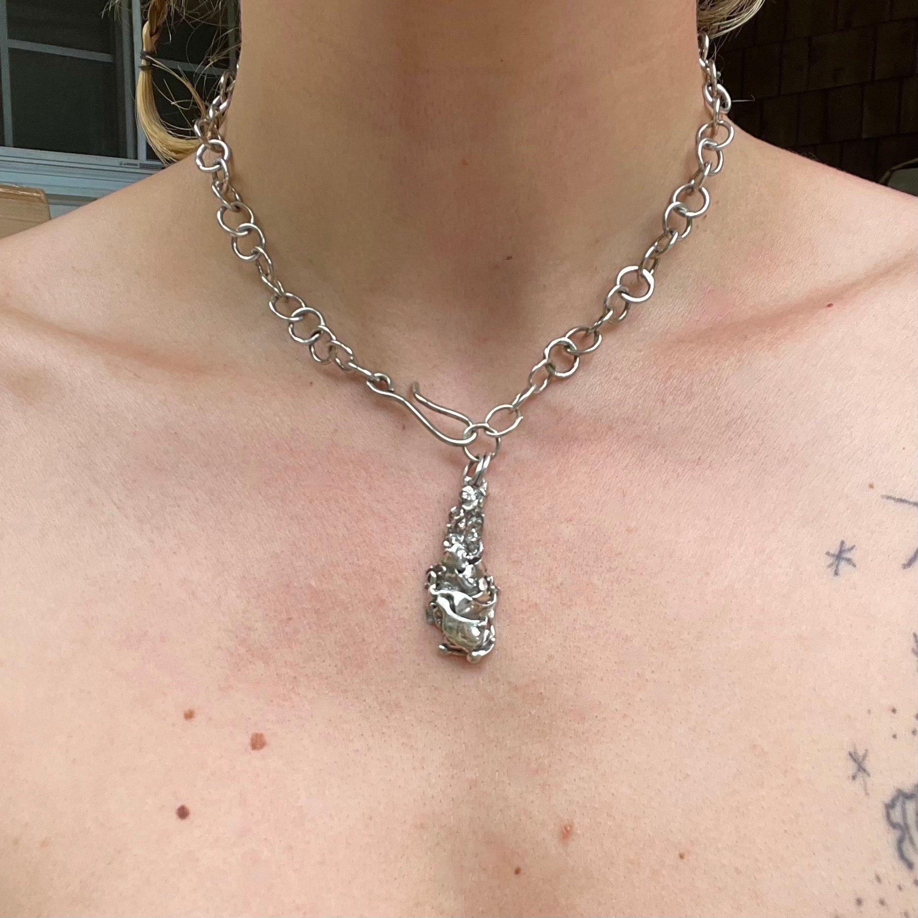 Fused Sterling Silver on hand made choker chain. 15 1/2 chain