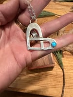 Criss crossed heart with tiny turquoise stone. Sterling silver chain 18”