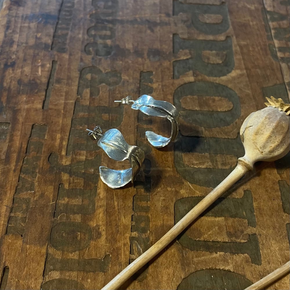 Hand cut and soldered Curly Sue Cactus inspired post earrings. Sterling silver.