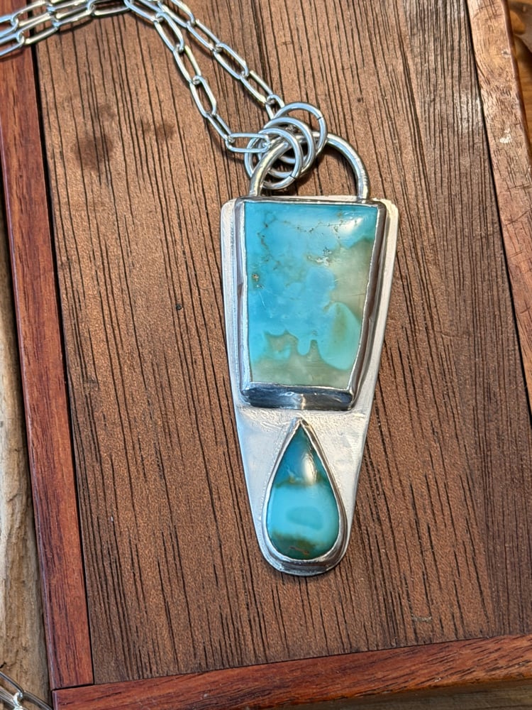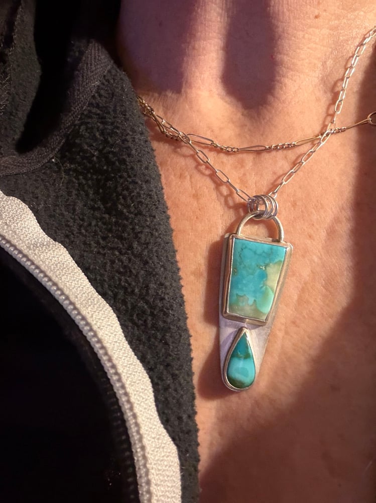 Two beautiful turquoise stones Set in Sterling silver. On an 18 inch sterling silver chain.